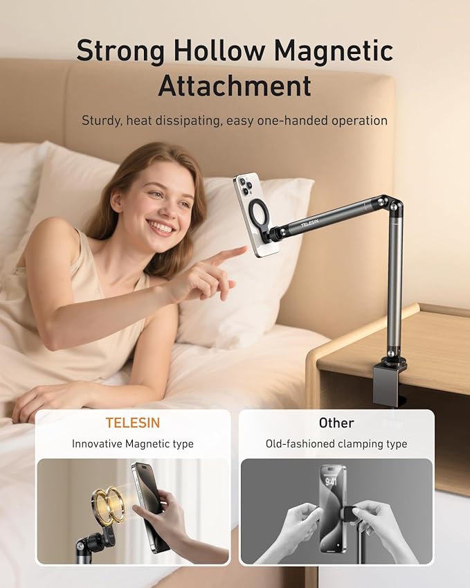 Picture this: You're following a recipe in the kitchen, hands covered in flour, and your phone keeps sliding off the counter. Or you're in bed, arms tired from holding your tablet during a movie marathon. Maybe you're a content creator struggling to find the perfect overhead angle for your next video. The TELESIN Magnetic Phone Holder eliminates all these frustrations with one elegant solution. Just bring your device close—*click*—it's secured. Adjust the flexible arm to any angle you need, whether you're filming, video calling, or simply enjoying hands-free entertainment. No more propping devices against books, no more sore arms, no more missed moments because you couldn't get the right angle.